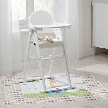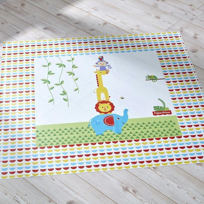O tapete Fisher-Price Reach The Sky é decorado com animais adoráveis. Os personagens alegres e a impressão geométrica brilhante tornarão as refeições divertidas, enquanto protegem o piso dos derramamentos.