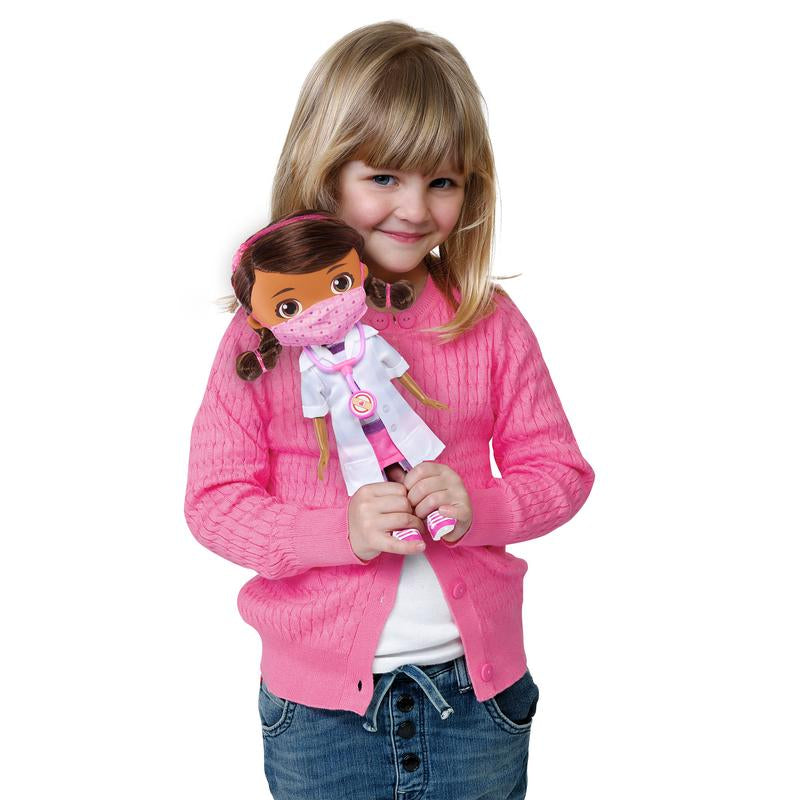 As crianças vão gostar de cantar junto com Doc McStuffins enquanto praticam lavar as mãos ao som da música “Wash Your Hands” do show. Pressione seu estetoscópio para ativar e Doc McStuffins canta e diz algumas de suas frases icônicas. Com 28 centímetros de altura, esta boneca Doc McStuffins está vestida com sua roupa clássica de médico e vem com uma máscara facial do tamanho de uma boneca, bolsa de médico, estetoscópio falso, termômetro e otoscópio para ajudá-la a cuidar de todos os seus pacientes!