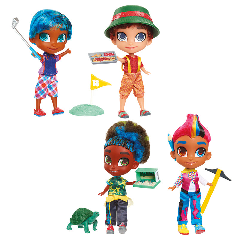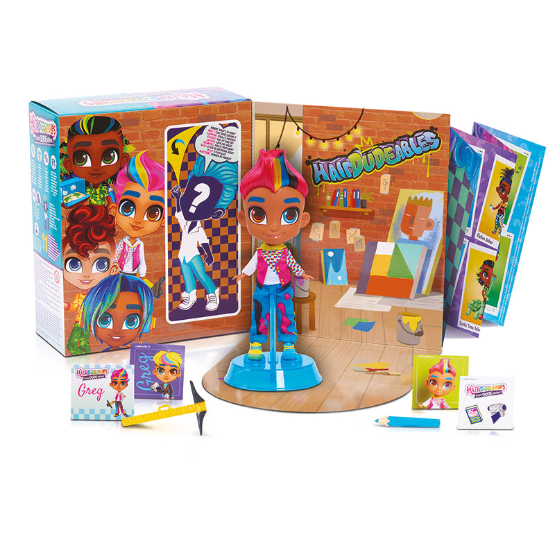 Cada um de nossos melhores amigos tem um visual e uma paixão que são únicos e eles são totalmente #STYLEGOALS. Um novo design de pacote com tema de armário inclui uma surpresa HairDUDEable com dez acessórios ocultos.