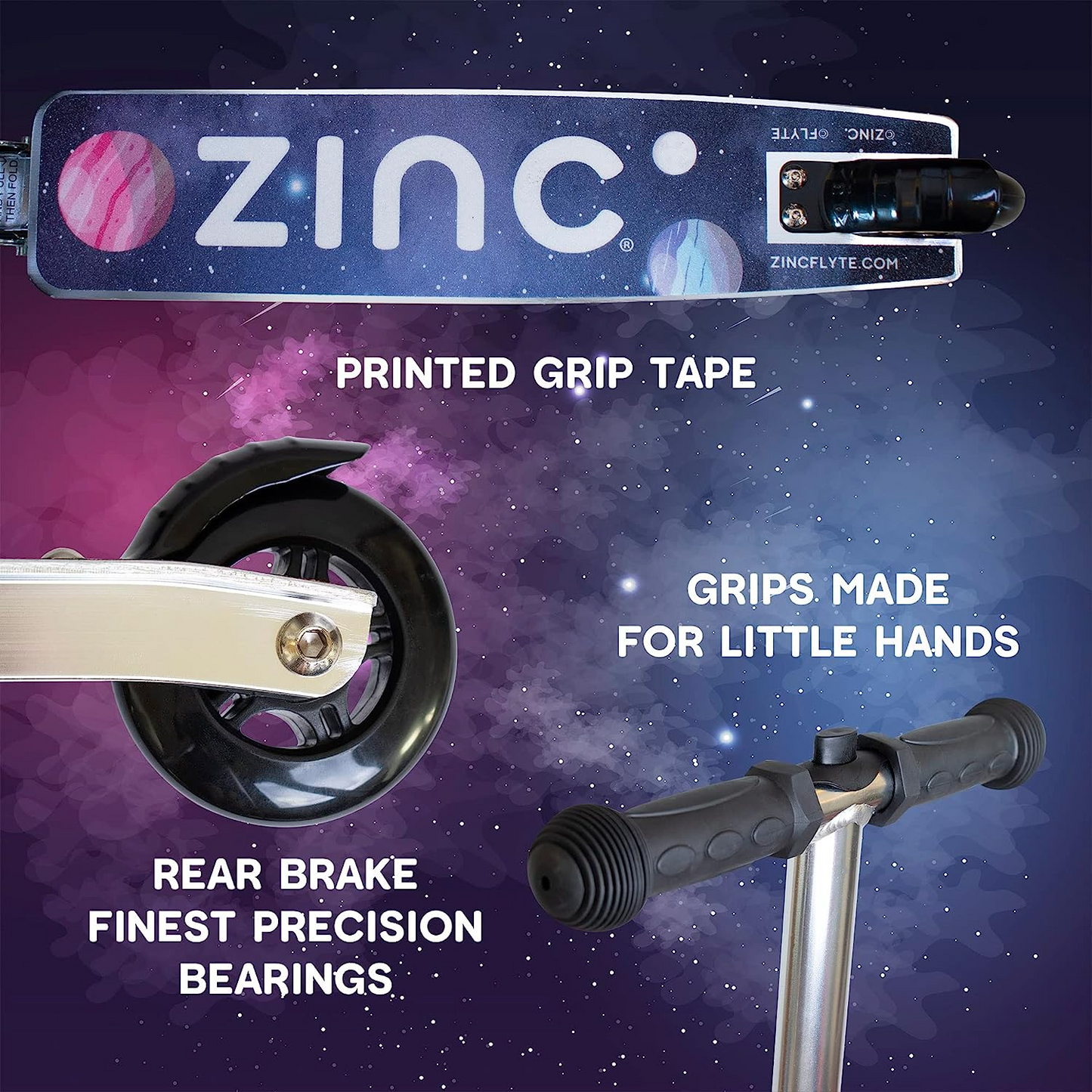 - O mecanismo de direção Lean 'n' da mala da scooter Flyte permite desenvolver seu equilíbrio e habilidades motoras com segurança enquanto se diverte.