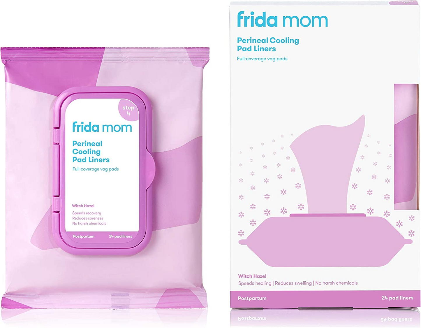 - CALM: Os forros de almofada de resfriamento perineal são a etapa 4 do regime de recuperação pós-parto de 5 etapas da Frida Mom.