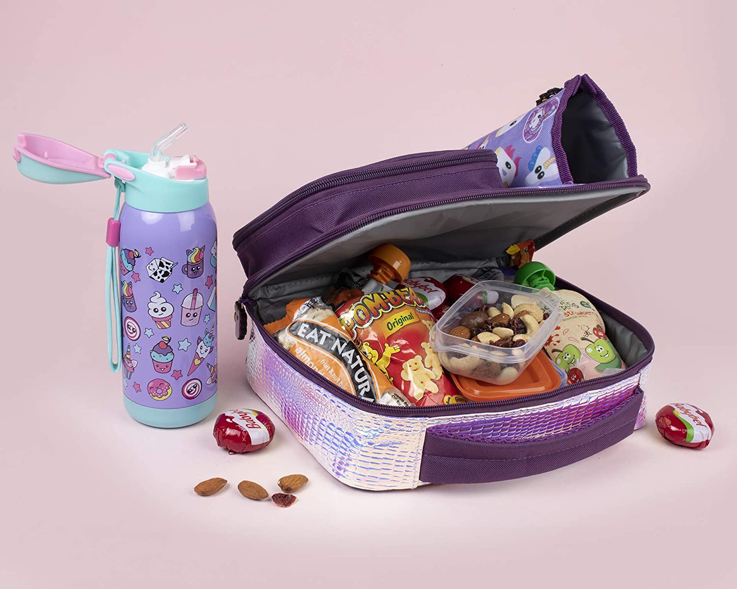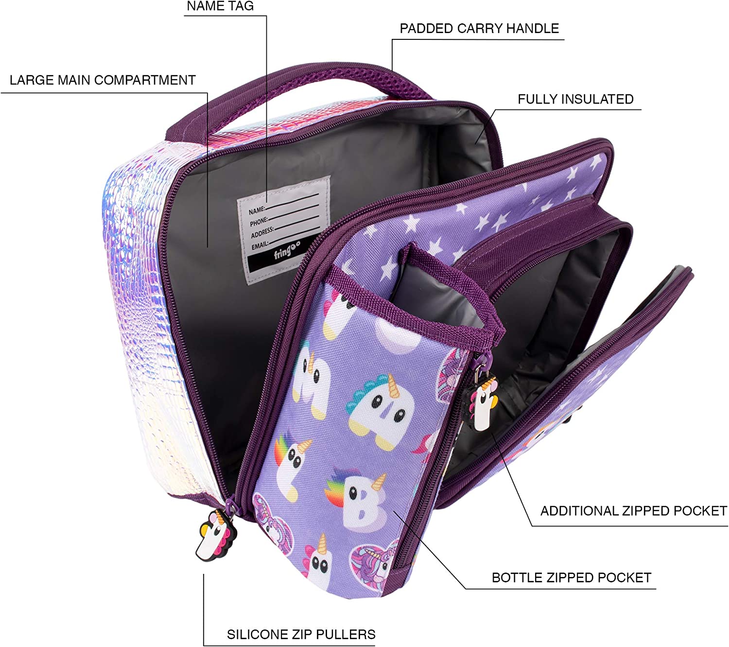 Fringoo - de grande capacidade crianças de almoço quadrado para Saco| Pequena bolsa legal lancheira para crianças | Perfeito como lancheira escolar para Meninas - Sorria