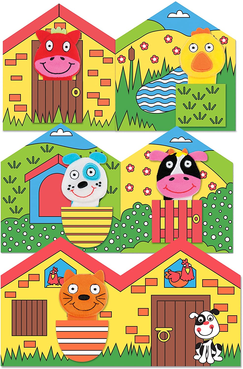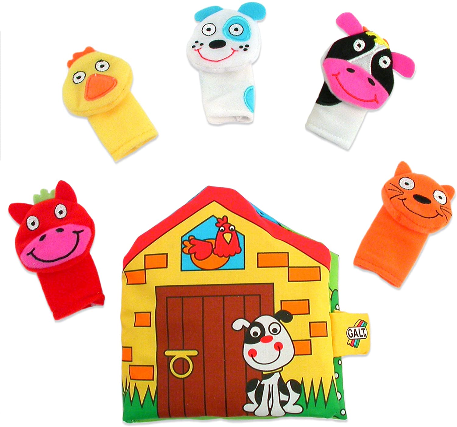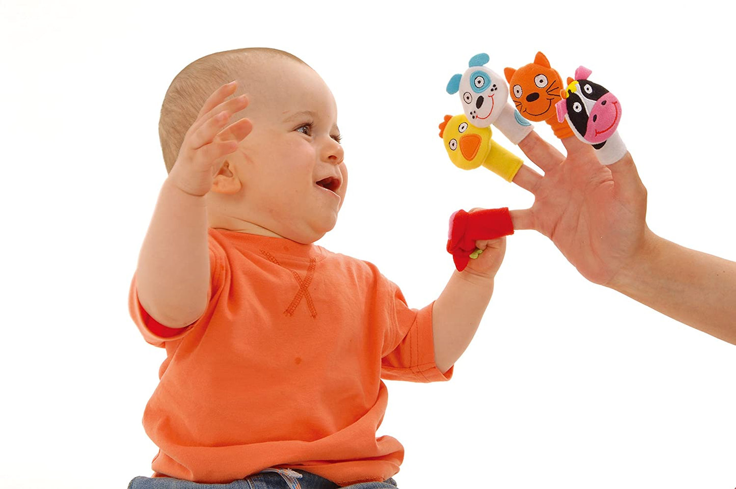 5 fantoches de dedo em um livro de 6 páginas para encantar um bebê