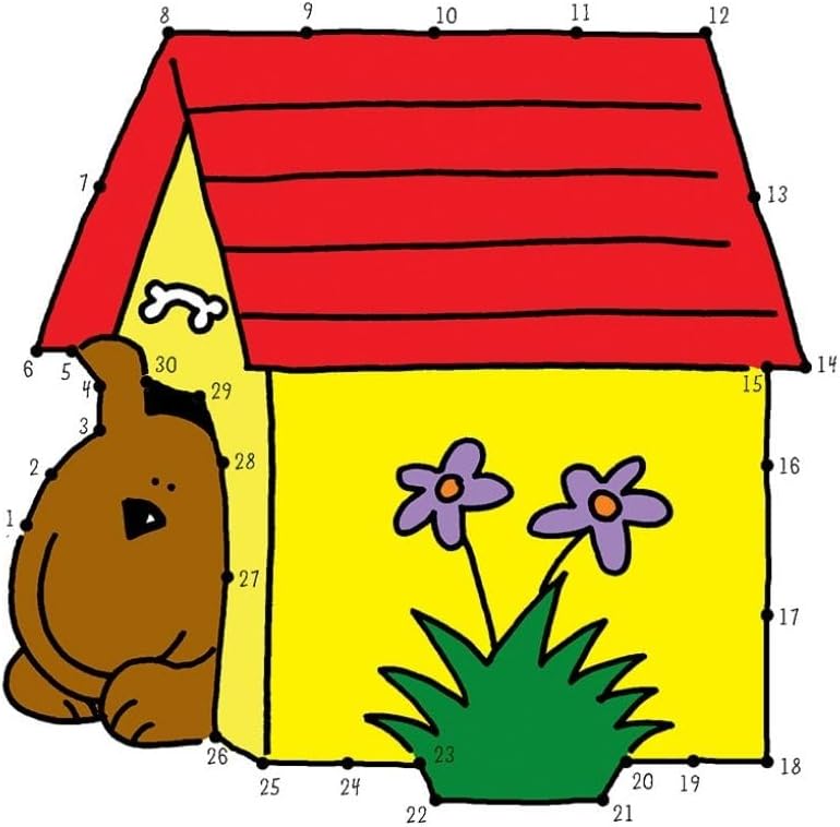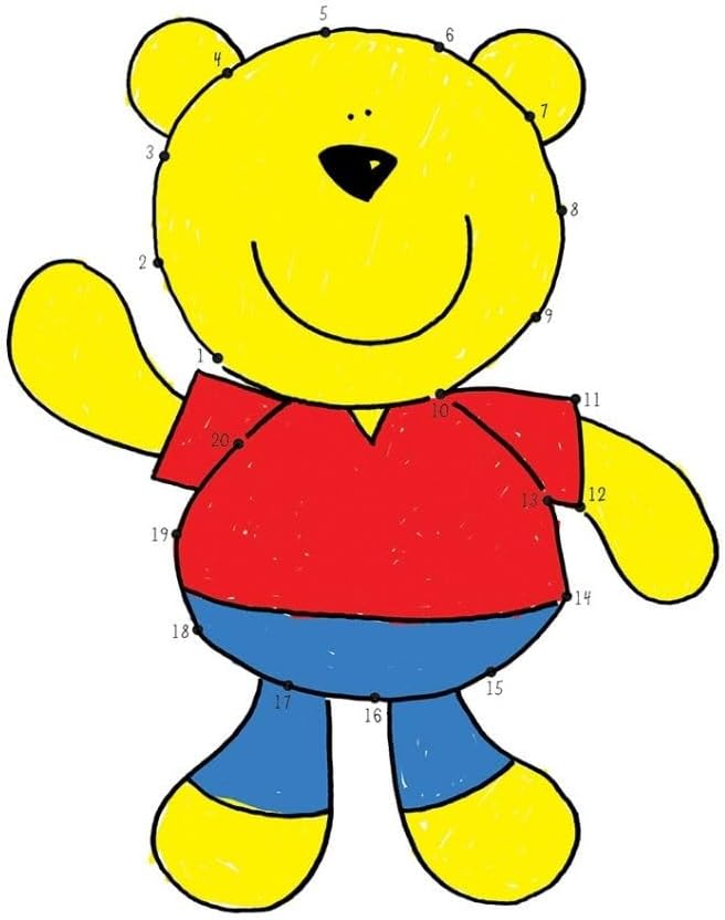 48 páginas, cada uma com uma divertida atividade de ligar os pontos. Há 20, 30 ou 40 pontos para ligar em cada imagem.