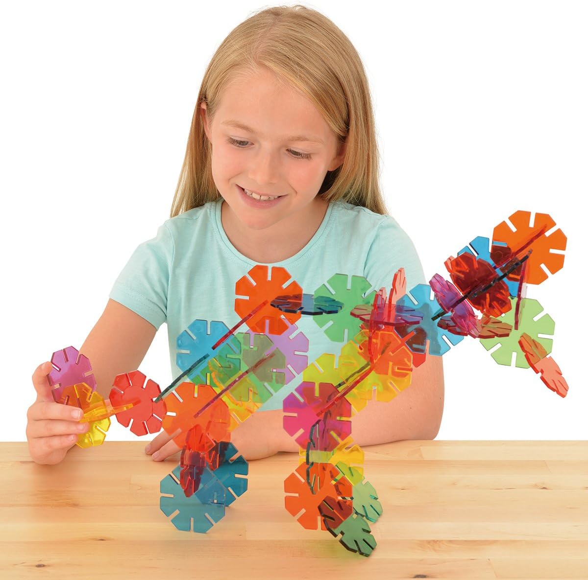 - Peças octogonais simples em cores translúcidas que se encaixam facilmente para criar uma grande variedade de modelos.