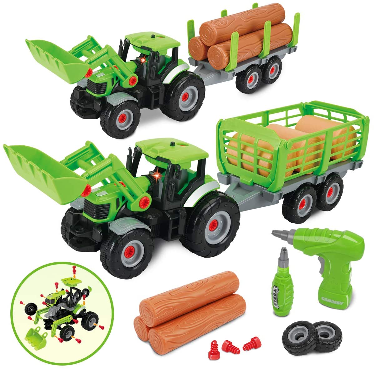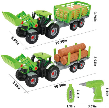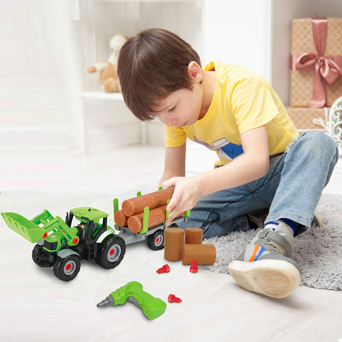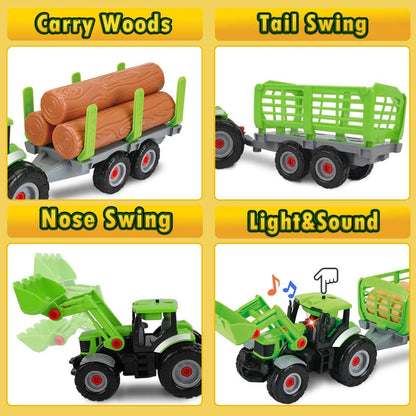 【Design realista】 Com luz e som simulados realistas. O carregador frontal móvel pode ser usado para cavar areia. O trailer traseiro pode girar para os dois lados e transportar a madeira para a fazenda. O design realista permite que as crianças entrem no colorido mundo da fazenda para mergulhar.