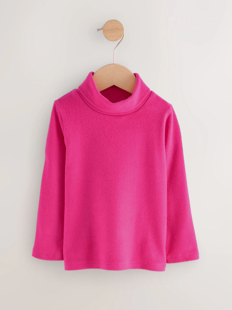 |Girl| Blusa De Gola Alta Manga Comprida Rosa Brilhante (3 meses a 7 anos)