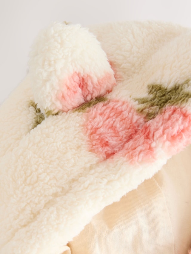 |Girl| Blusa De Lã Com Zíper e Estampa Floral Creme (3 meses a 7 anos)