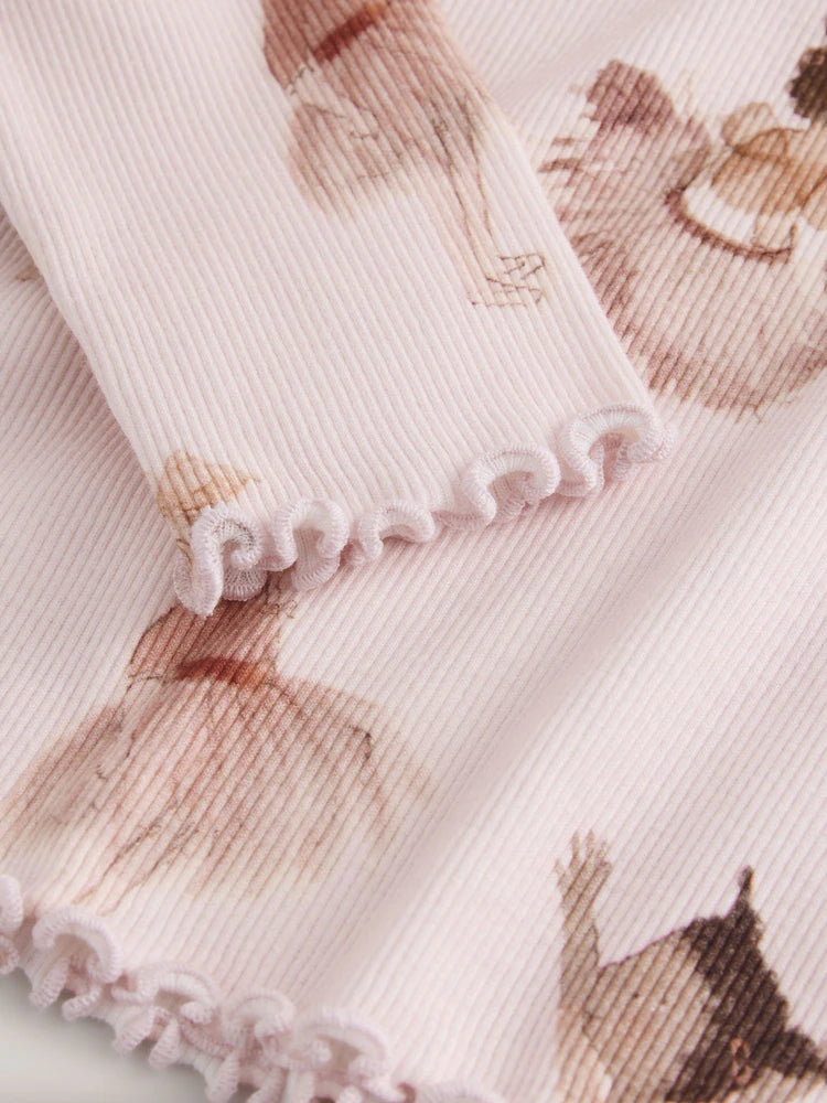 |Girl| Blusa De Manga Comprida Canelada Rosa Estilo Bailarina (3 meses a 7 anos)