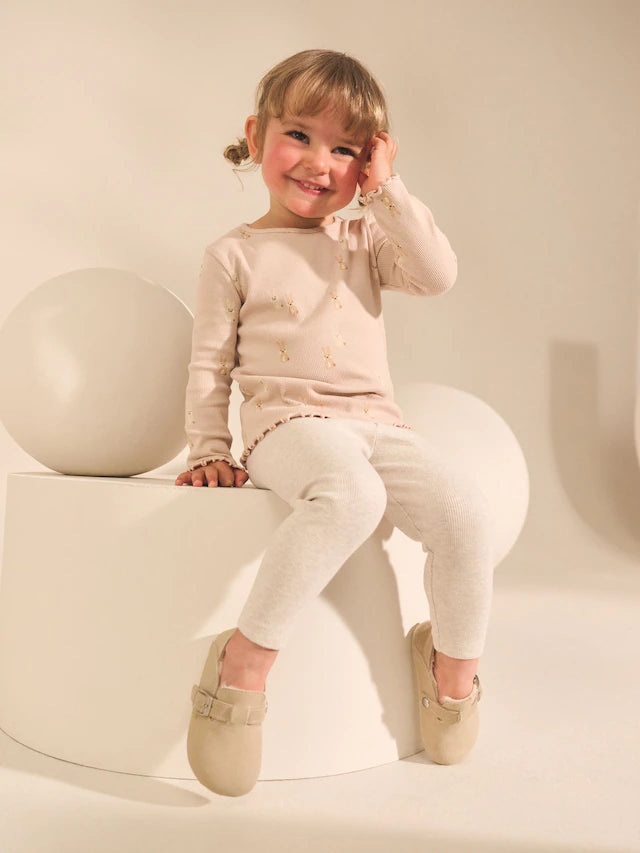 |Girl| Blusas Caneladas De Manga Comprida Neutras, Pacote Com 5 (3 meses a 7 anos)