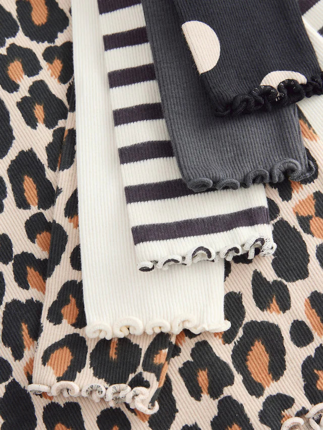 |Girl| Blusas Caneladas De Manga Comprida Pretas/Brancas, Pacote Com 5 (3 meses a 7 anos)