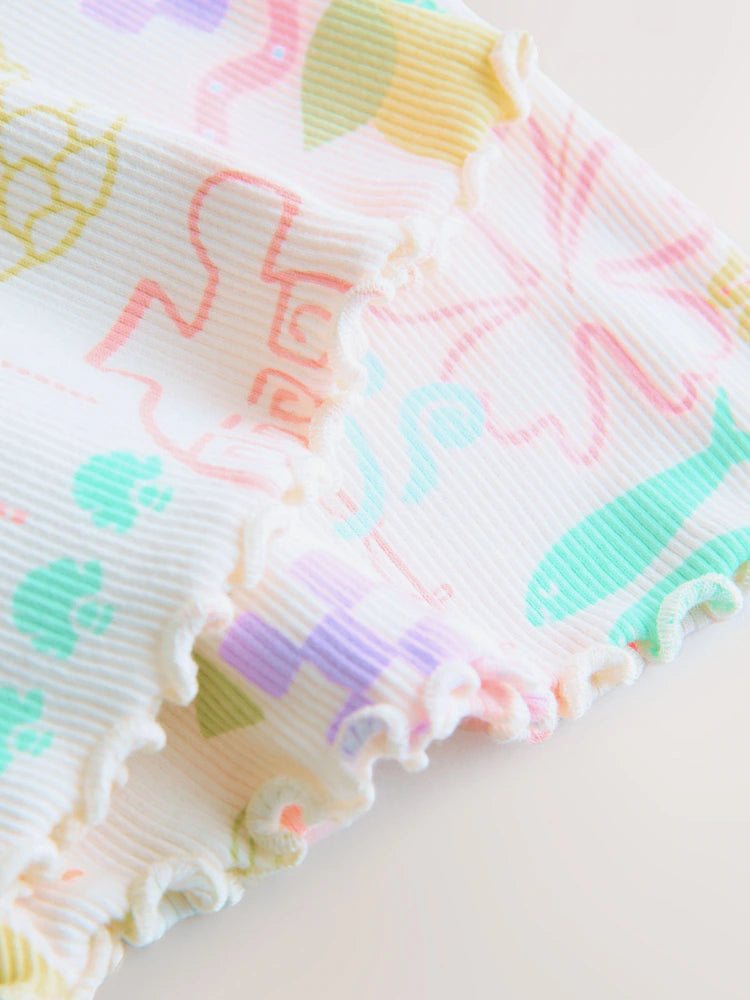 |Girl| Calça Legging Flare Canelada Em Tom Cru Com Detalhes Em Arco-íris (3 meses a 7 anos)