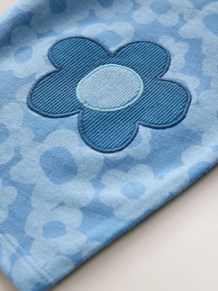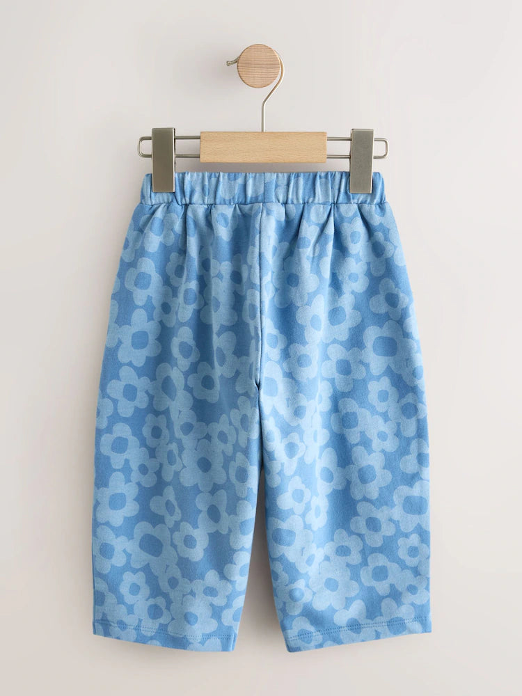 |Girl| Calças Barril Com Detalhes De Flores Azuis (3 meses a 7 anos)