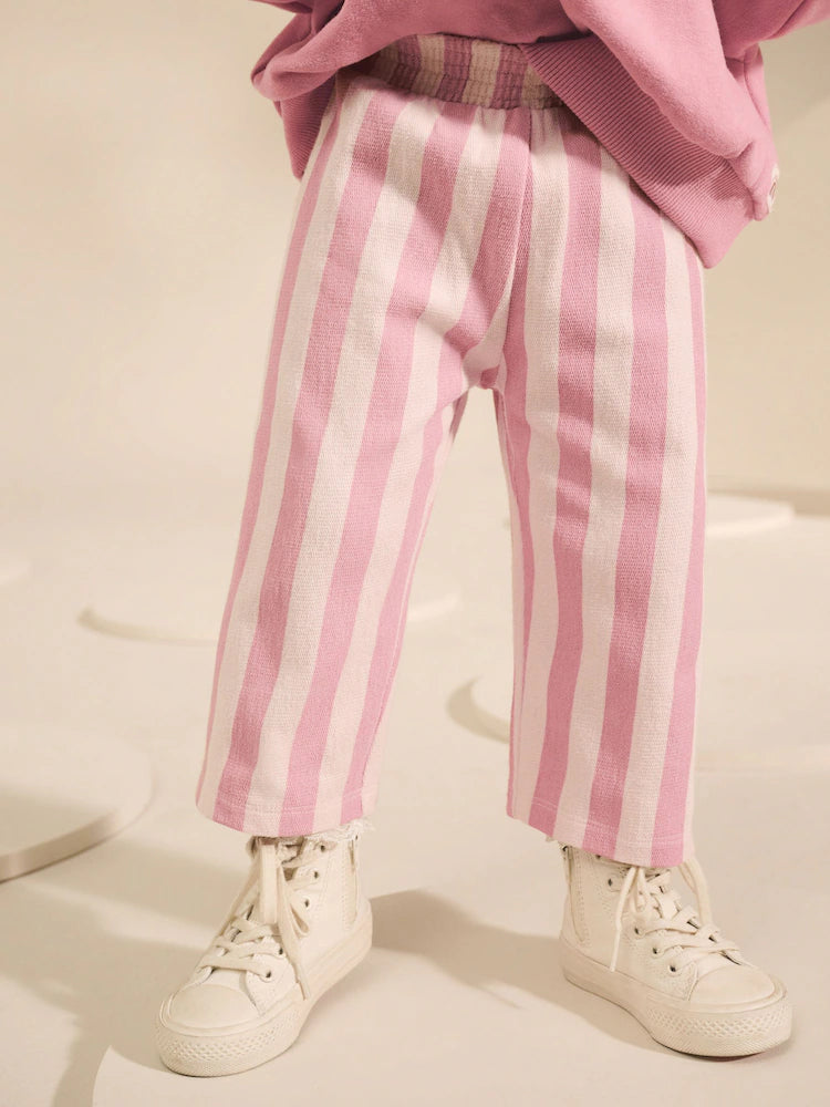 |Girl| Calças Largas Listradas Rosa (3 meses a 7 anos)