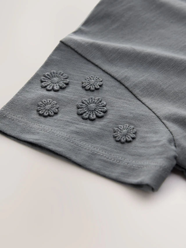 |Girl| Camiseta 100% Algodão De Manga Curta Cinza Carvão Daisy (3 meses a 7 anos)