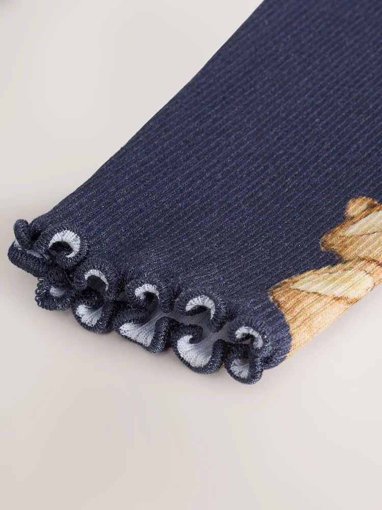 |Girl| Camiseta De Manga Comprida Com Estampa De Urso Azul Marinho (3 meses a 7 anos)