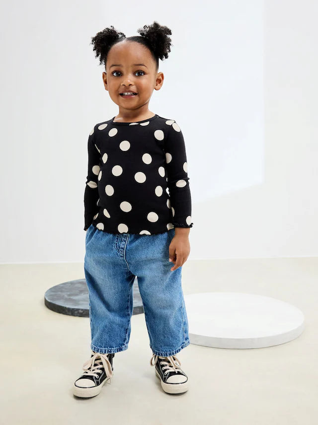 |Girl| Camiseta De Manga Comprida Com Nervuras Pretas e Brancas (3 meses a 7 anos)