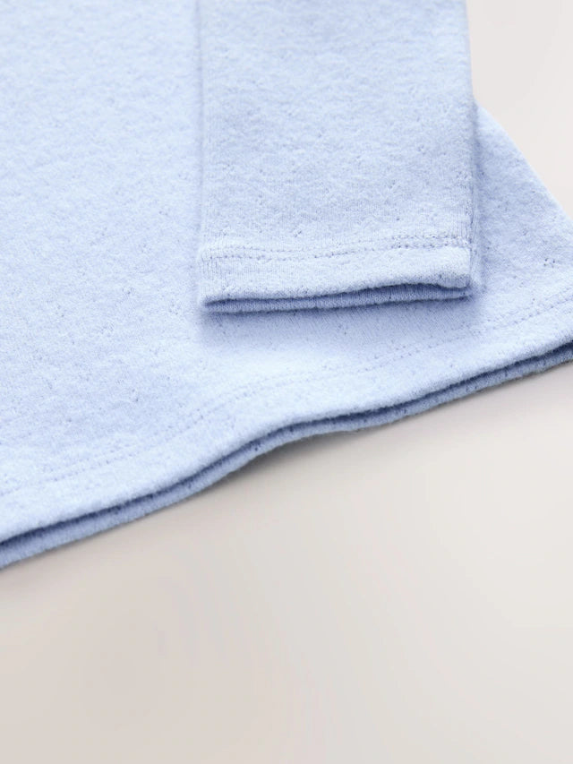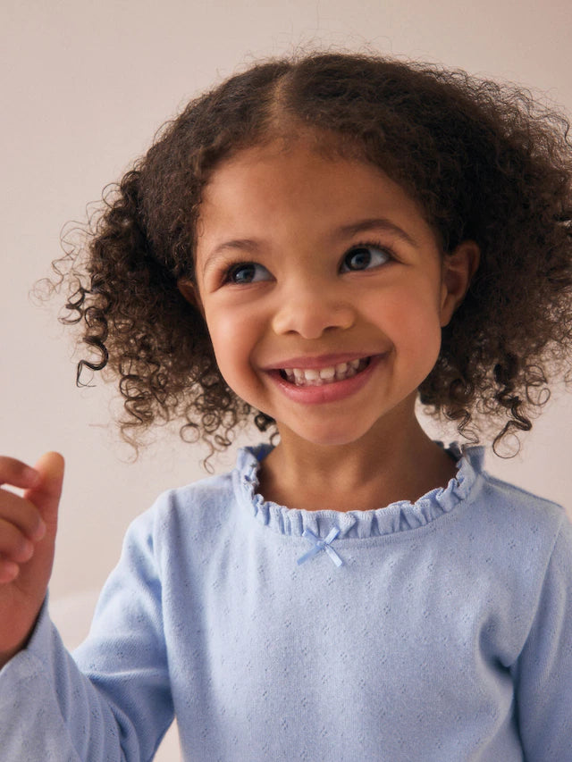 |Girl| Camiseta Pointelle Azul Manga Longa (3 meses a 7 anos)