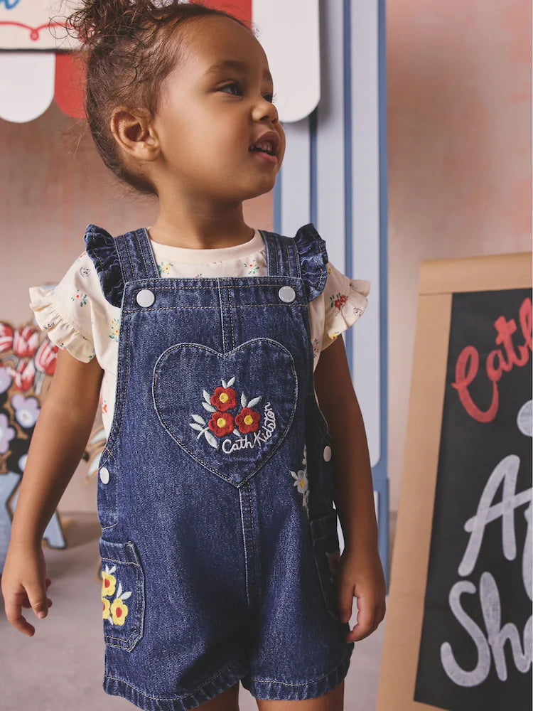 |Girl| Conjunto De Jardineira e Blusa Floral Em Jeans Cath Kidston (3 meses a 7 anos)
