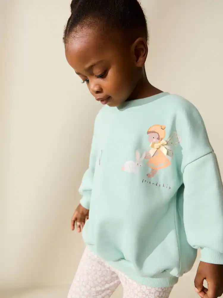 |Girl| Conjunto De Moletom e Leggings Azul Claro Com Estampa De Fada (3 meses a 7 anos)