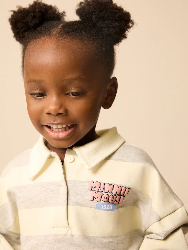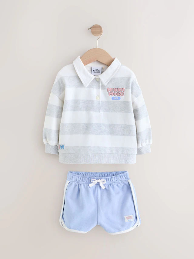 |Girl| Conjunto De Moletom e Shorts Cinza 100% Algodão Minnie Mouse Com Listras De Rugby (3 meses a 7 anos)