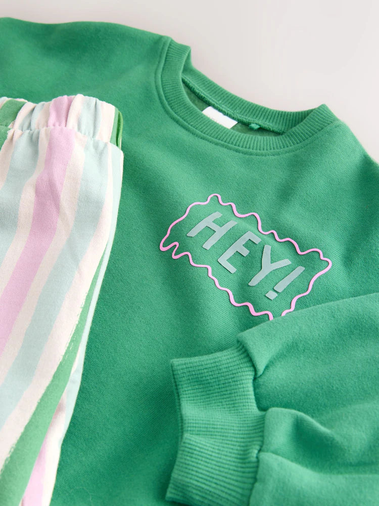 |Girl| Conjunto De Moletom Verde e Calça Pantalona (3 meses a 7 anos)