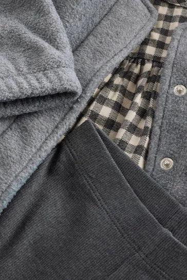 |Girl| Conjunto De Vestido, Jaqueta e Leggings Cinza De Algodão (3 meses a 8 anos)