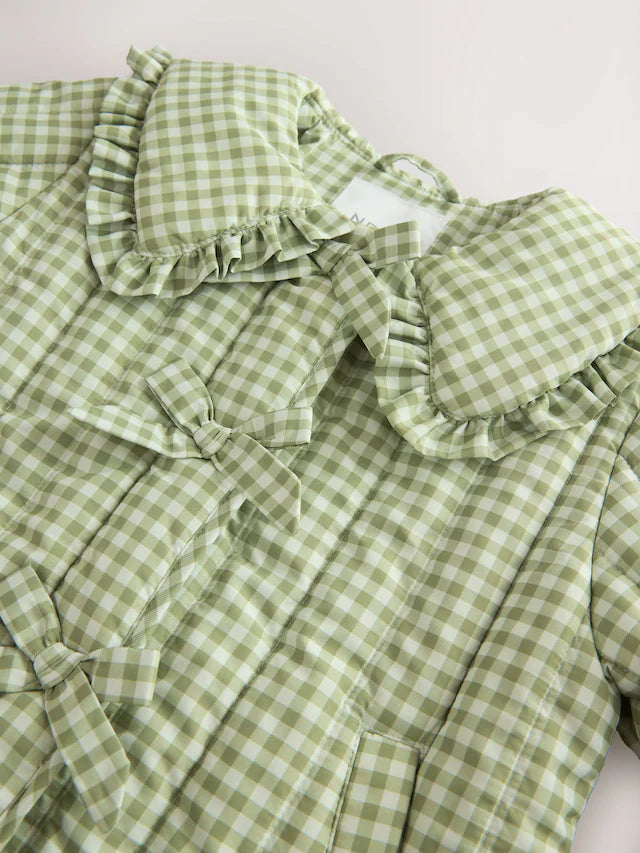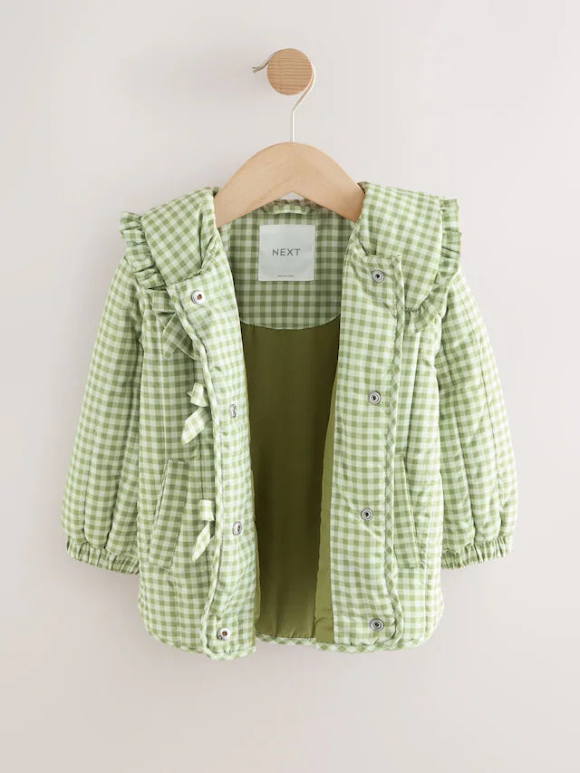 |Girl| Jaqueta Verde Resistente a Chuva Com Gola De Babados (3 meses a 7 anos)