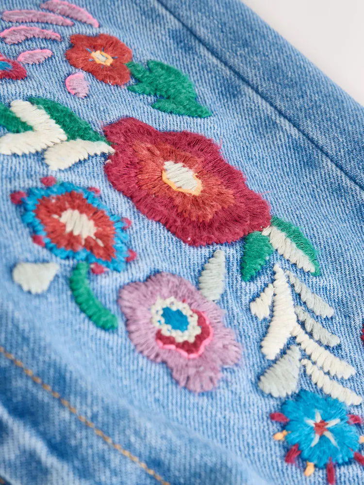 |Girl| Macacão Bordado Floral Azul Médio (3 meses a 7 anos)