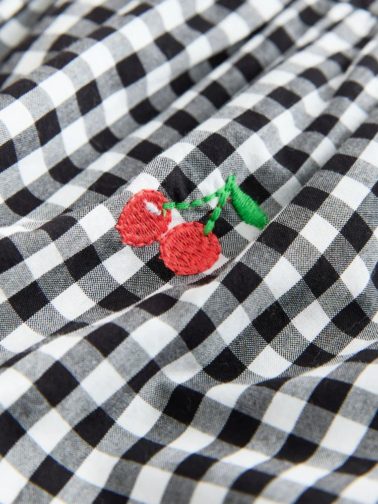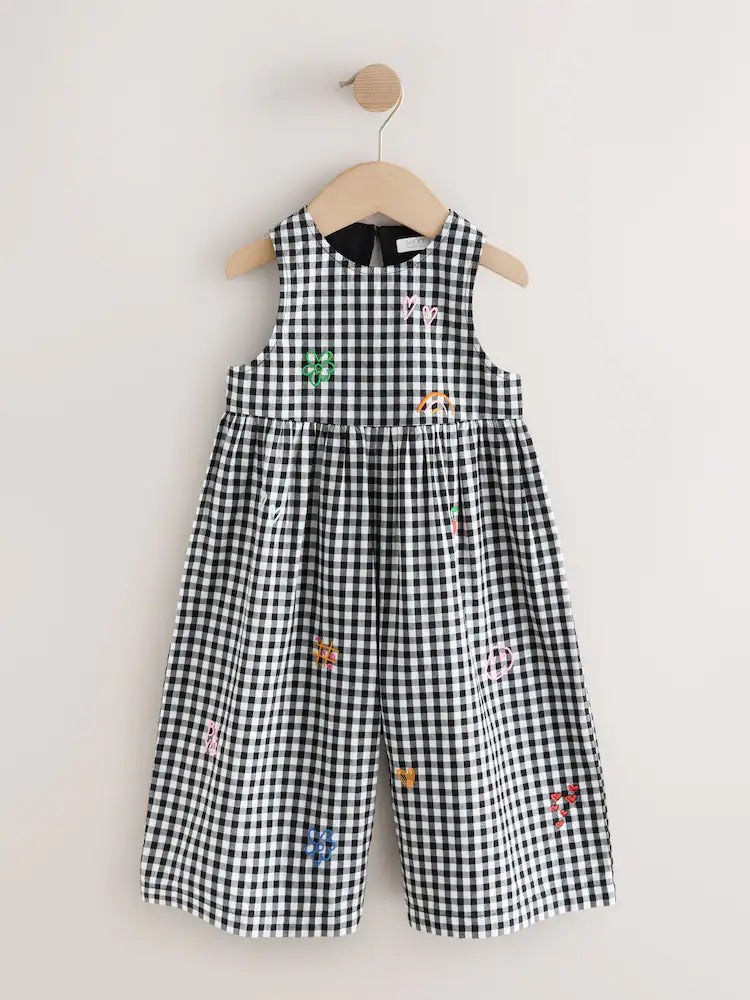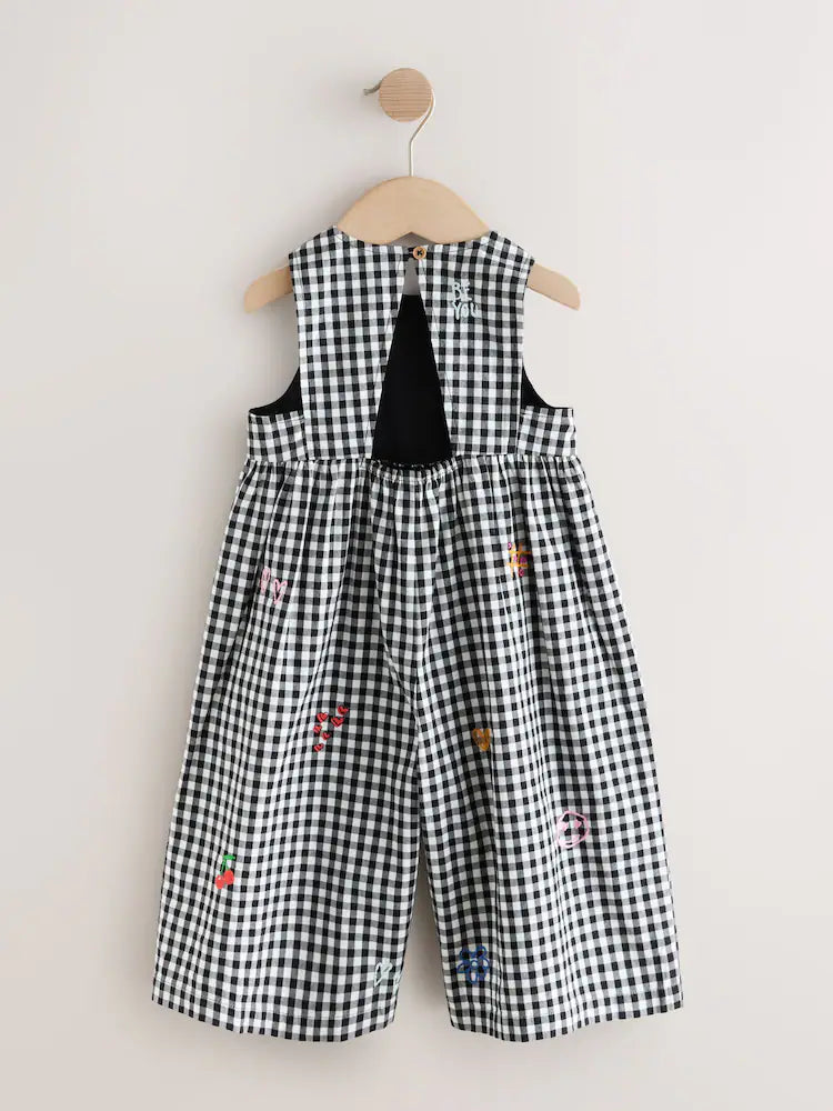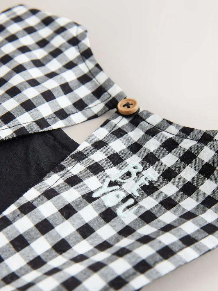 |Girl| Macacão Curto Sem Mangas Xadrez Preto e Branco (3 meses a 7 anos)