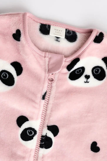 |Girl| Macacão de bebê com zíper e lã - Panda rosa
