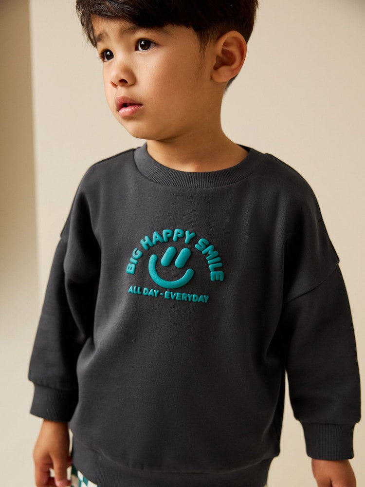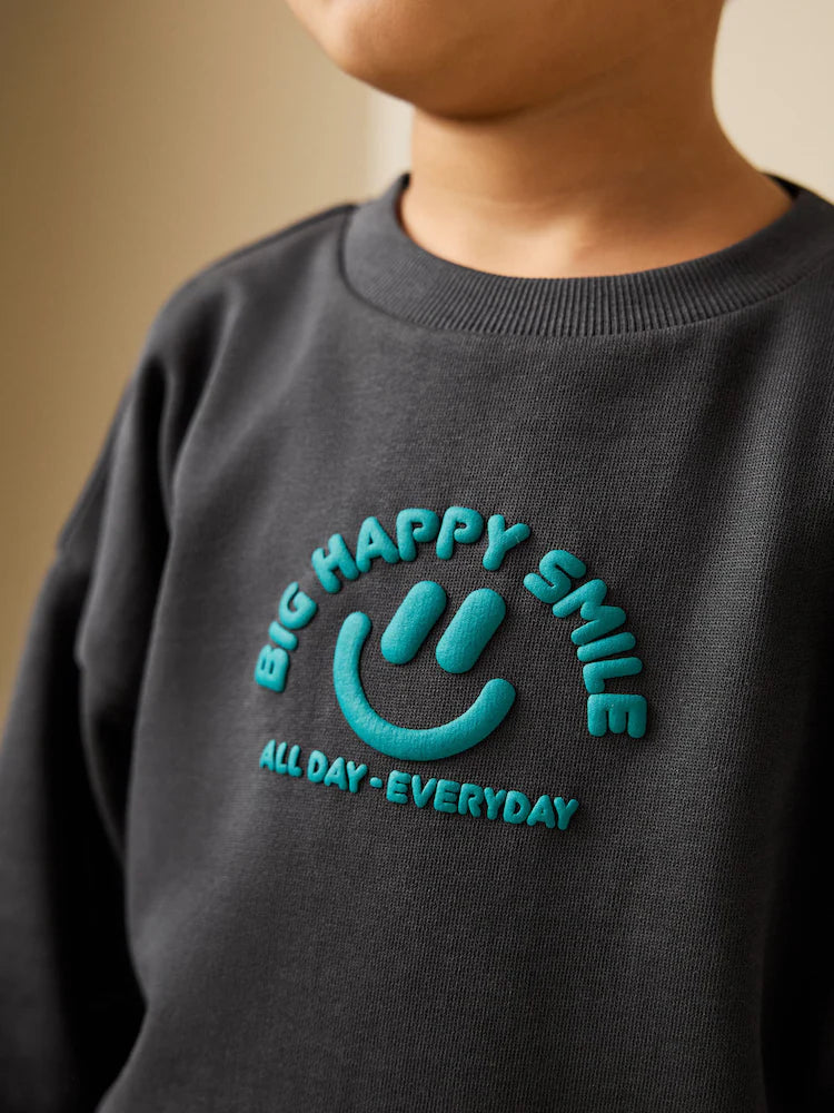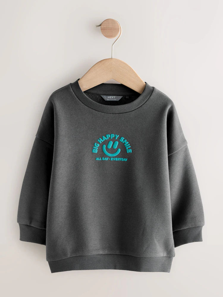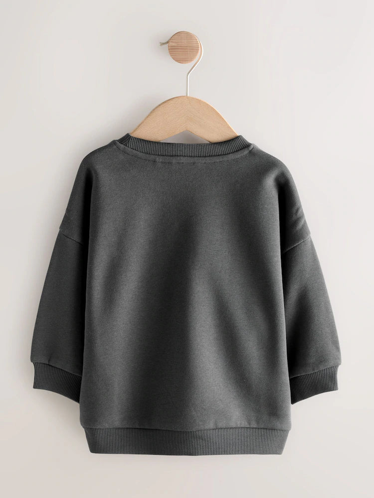 |Boy| Moletom Cinza Carvão Com Gola Redonda (3 meses a 7 anos)