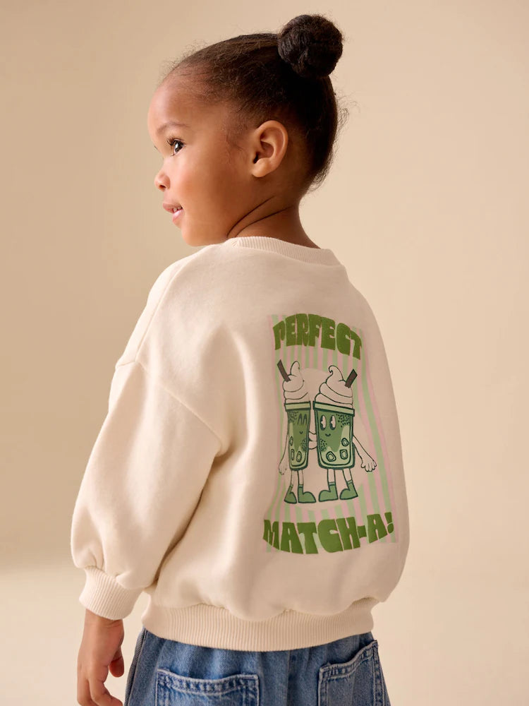 |Girl| Moletom De Gola Redonda Na Cor Creme Matcha (3 meses a 7 anos)
