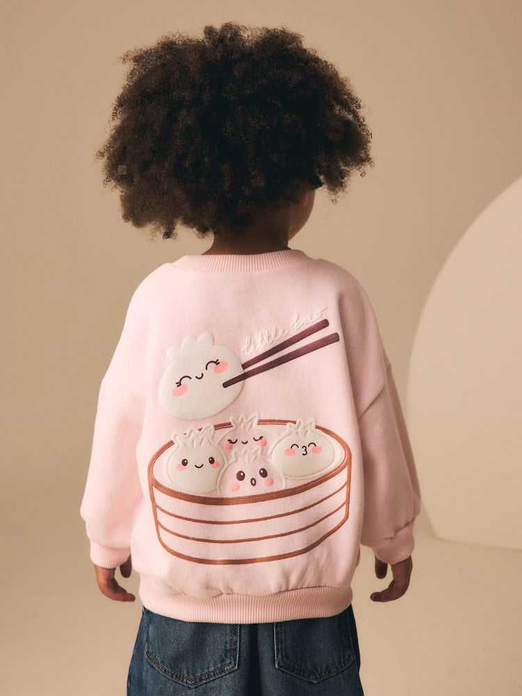 |Girl| Moletom Rosa Claro Com Estampa De Pãezinhos Bao (3 meses a 7 anos)