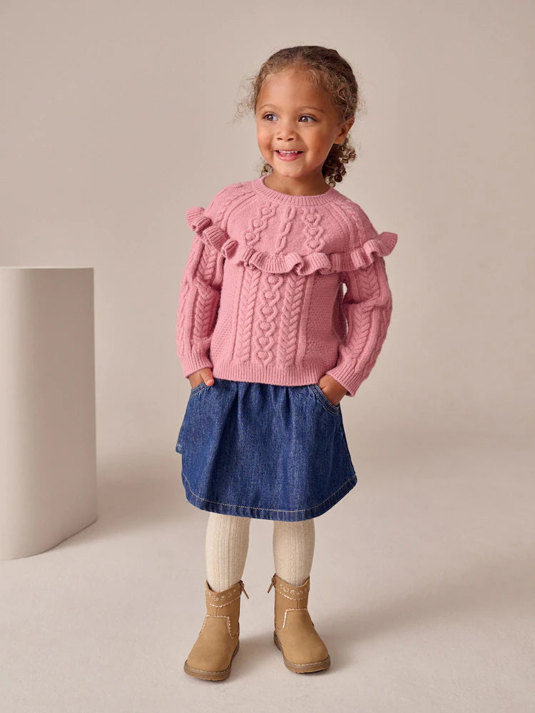 |Girl| Suéter De Tricô Rosa (3 meses a 7 anos)