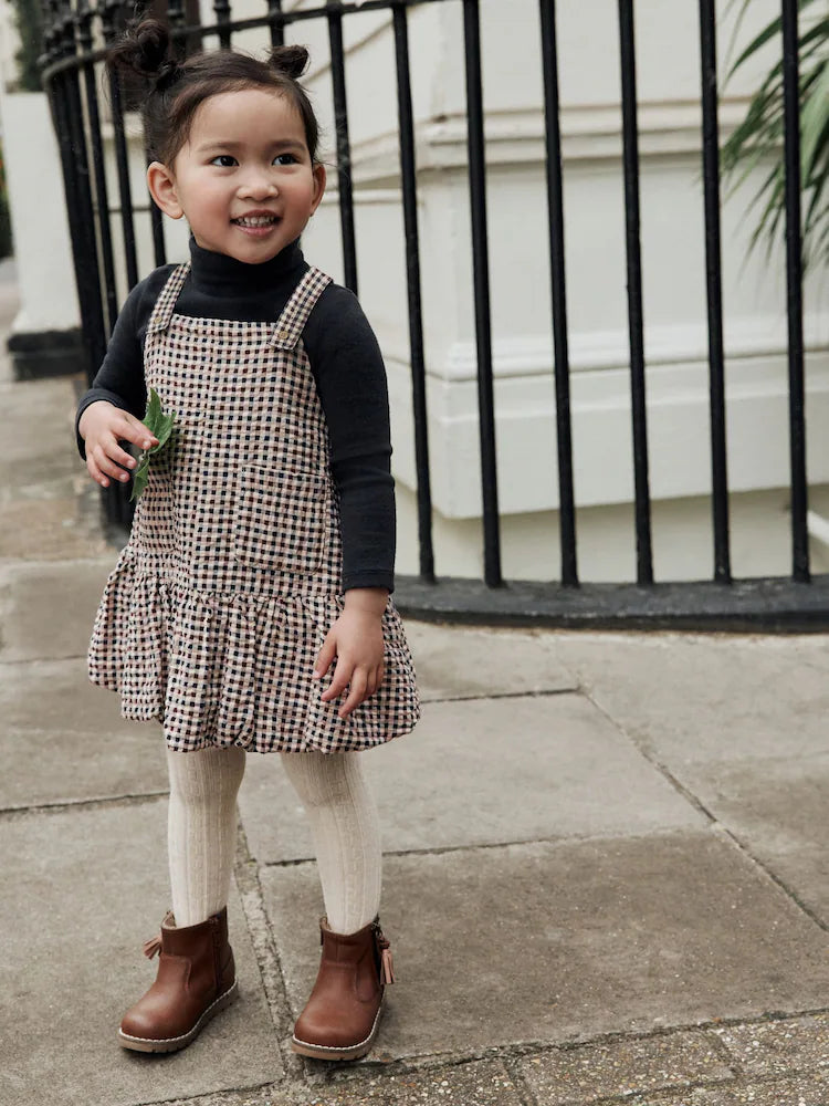 |Girl| Vestido Avental Xadrez Neutro Com Bainha Bolha (3 meses a 8 anos)