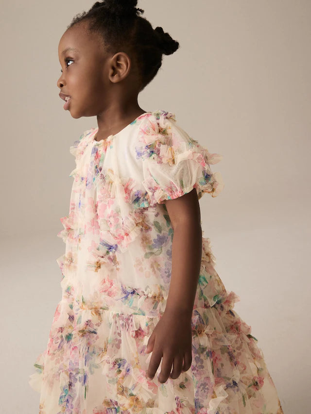 |Girl| Vestido De Festa De Malha Multifloral (3 meses a 7 anos)