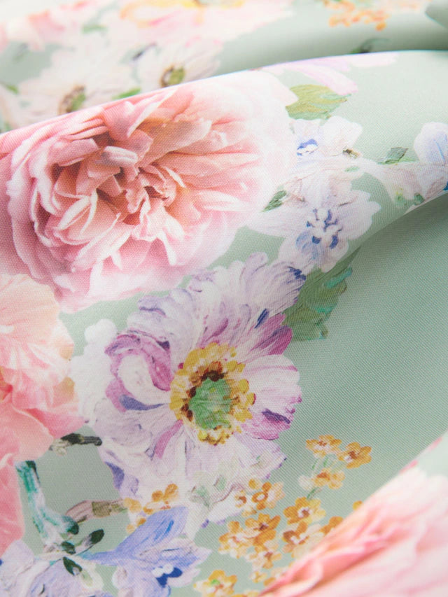 |Girl| Vestido De Festa Verde Sem Mangas Com Estampa Floral (3 meses a 7 anos)