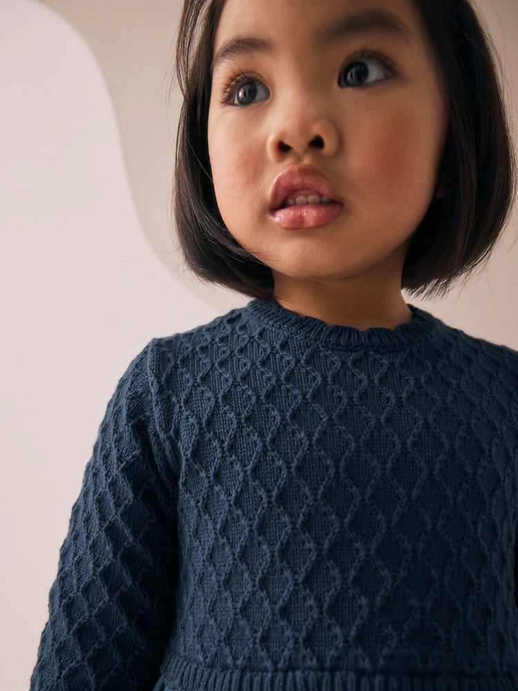 |Girl| Vestido Jeans Azul De Malha (3 meses a 7 anos)