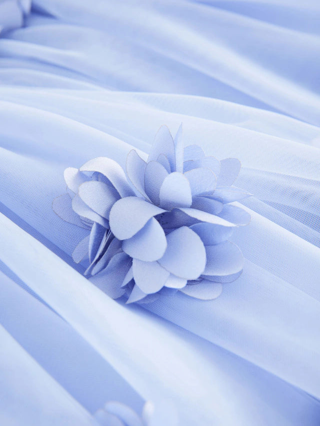 |Girl| Vestido De Malha Azul Sem Mangas Com Flores (3 meses a 7 anos)