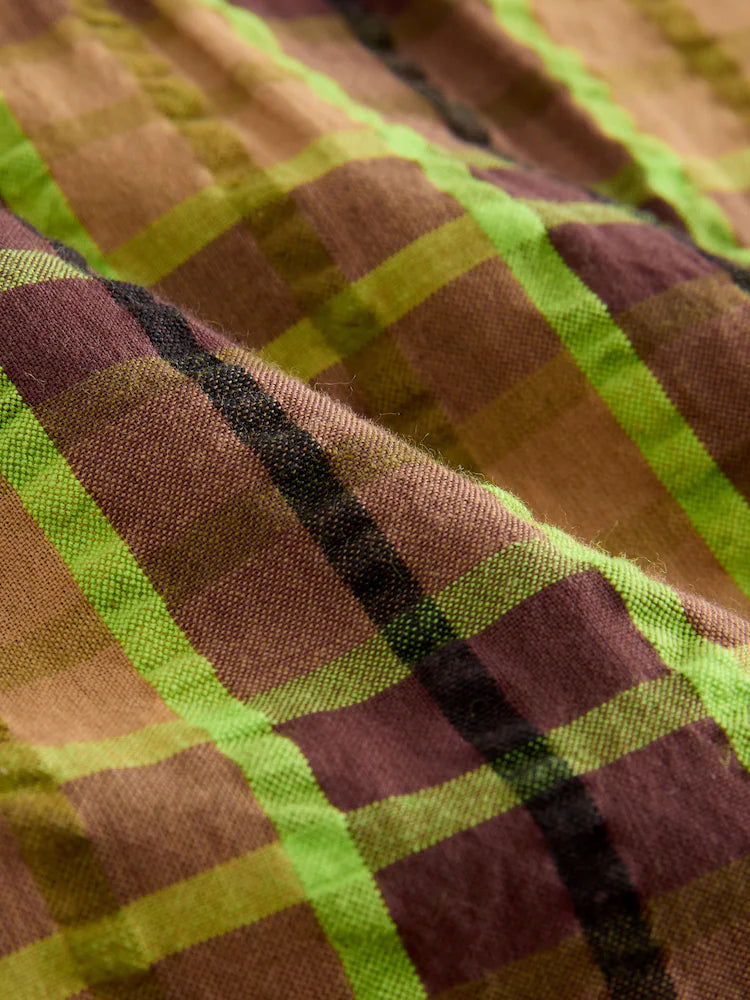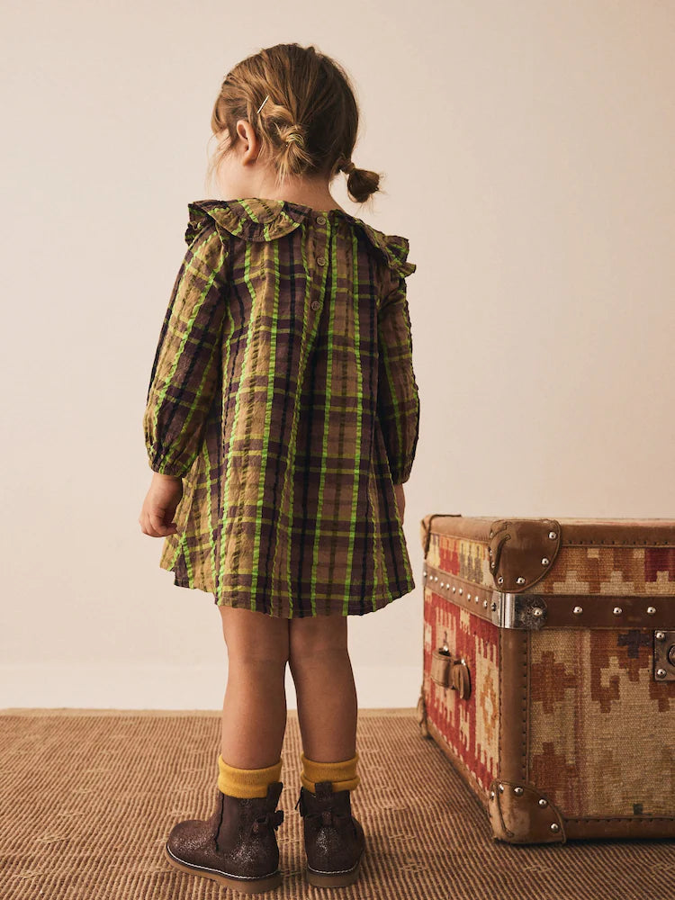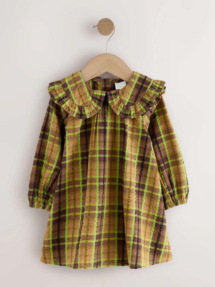 |Girl| Vestido De Manga Comprida Com Babados e Gola Xadrez Chocolate/Lima (3 meses a 8 anos)