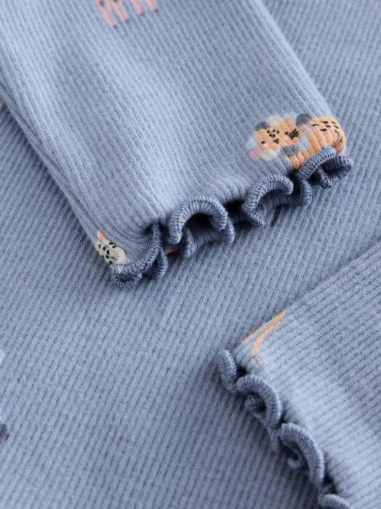 |Girl| Camiseta Manga Comprida Canelada Azul (3 meses a 7 anos)