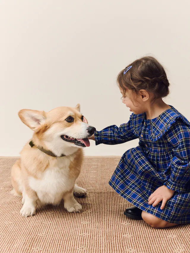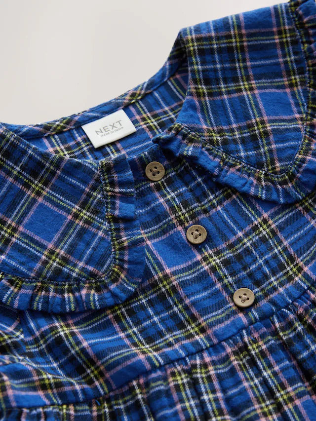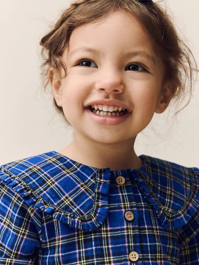 |Girl| Vestido Xadrez Azul Cobalto Com Gola Longa e Manga Comprida (3 meses a 8 anos)