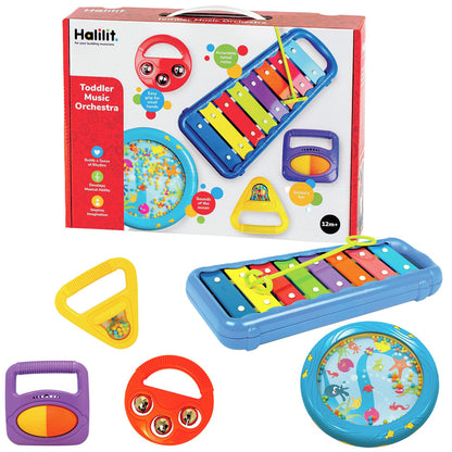 A Halilit Toddler Music Orchestra é embalada de forma atraente em uma caixa colorida com alça de transporte e é um presente maravilhoso que incentivará a criação de música desde tenra idade.