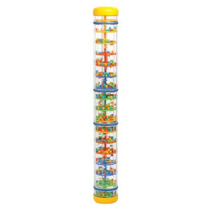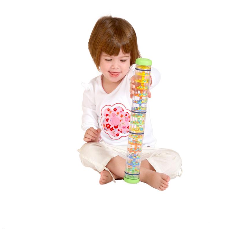 Ao girar o Rainbomaker, o bebê poderá observar as pérolas coloridas em cascata através do tubo, criando sons fascinantes e efeitos visuais que encantarão as crianças.
