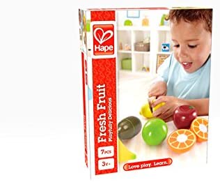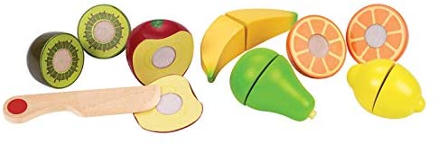 Hape - Frutas frescas - Play Food de madeira com faca segura para crianças