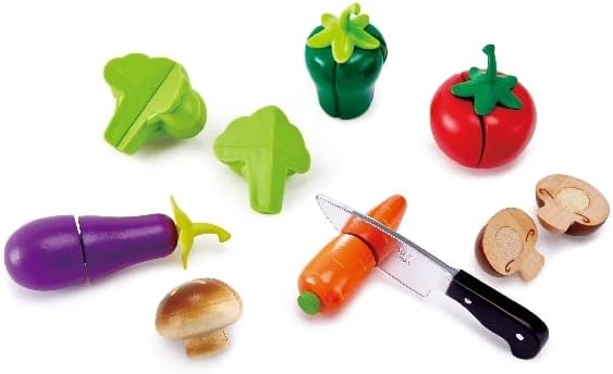 - KIDS PLAY FOOD: Não há nada mais saudável do que vegetais frescos! Aprenda habilidades adequadas de preparação de alimentos e o valor de uma alimentação saudável aparando os talos do tomate, da berinjela e do pimentão antes de cozinhar