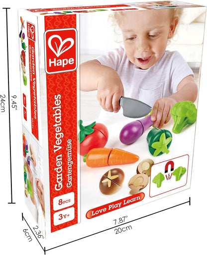 Hape Legumes de jardim, acessórios de cozinha de madeira para crianças, comida de brincar para crianças 3+