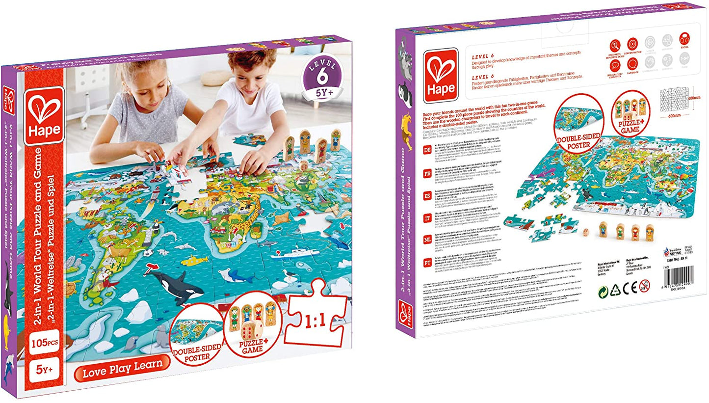 Hape - World Tour Atlas de madeira e jogo de tabuleiro