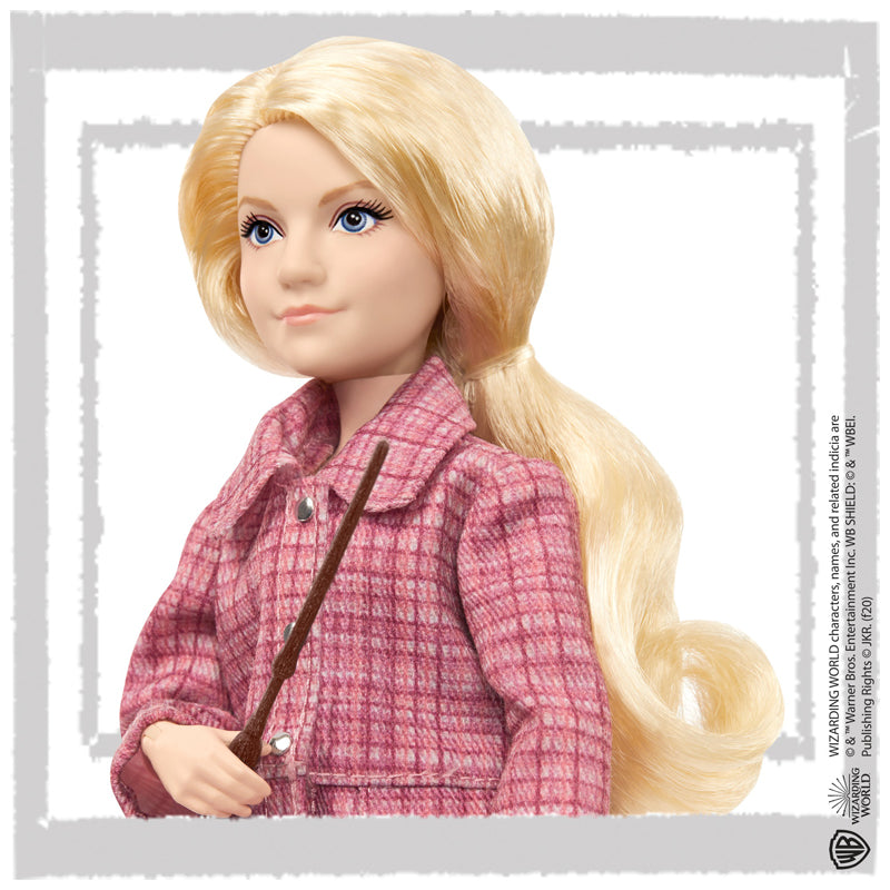 Esta boneca inspirada em filme traz Harry Potter e seus amigos de volta a Hogwarts! Fãs e colecionadores podem recriar momentos favoritos ou imaginar suas próprias histórias cheias de ação com a boneca Luna Lovegood. Em um casaco de tweed rosa, saia de outro mundo, meia-calça e tênis, ela se parece com seu amado personagem na série de filmes Harry Potter. A boneca Luna vem com acessórios de contação de histórias, como o Pasquim, seus famosos Spectrespecs e uma varinha personalizada que ela realmente pode segurar! Com flexibilidade no pescoço, ombros, quadris, joelhos, cotovelos e pulsos, ela está pronta para jogos de ação e poses fascinantes.